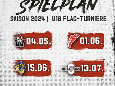 U16-Flag Spielplan 2024 17.04.2024 Auch der Spielplan für unsere Flag-U16 ist nun offiziell und komplett.Wir nehmen an vier Turnieren teil und sind gespannt, wie die Saison... Read More0