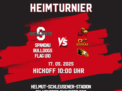 Heimturnier der Flag U10 13.05.2025 Unsere Flag U10 wird dieses Wochenende das erste Flag-Turnier unserer Gruppe ausrichten! Termin: Samstag, 17.05.2025.1. Kickoff wird gegen 10 Uhr sein Location:... Read More0