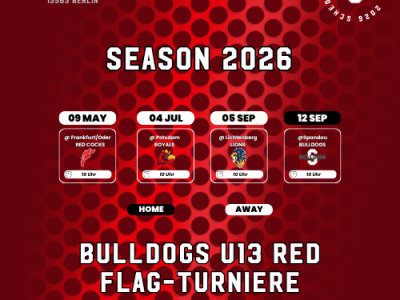 Flag U13: red+black Turnier-Termine 19.04.2026 Wir haben final die Termine für unsere beiden U13 Teams.Tragt euch die Termine in den Kalender und schaut bei den Turnieren vorbei,... Read More0