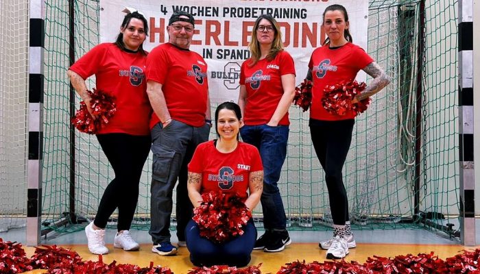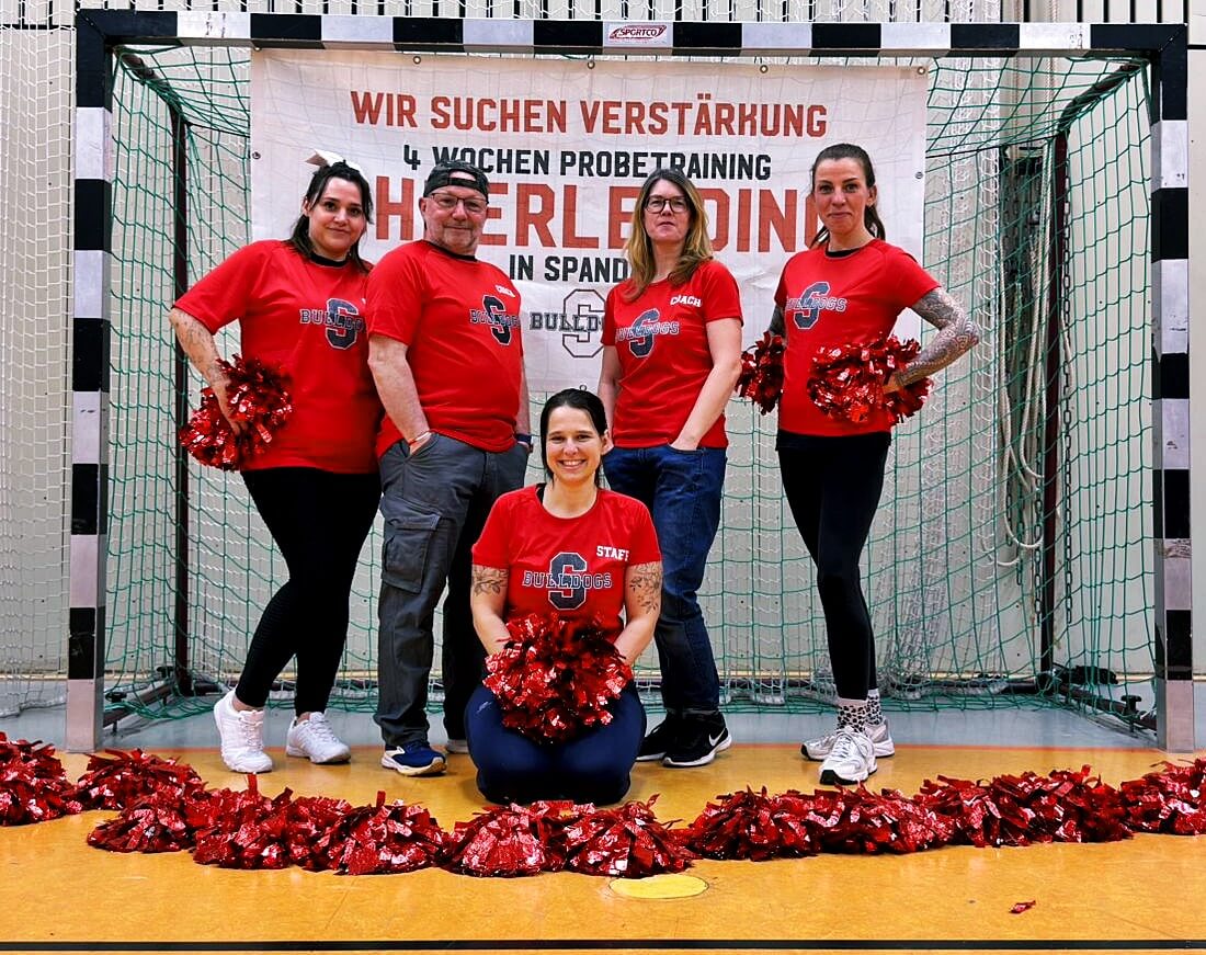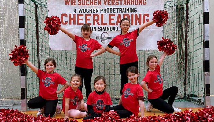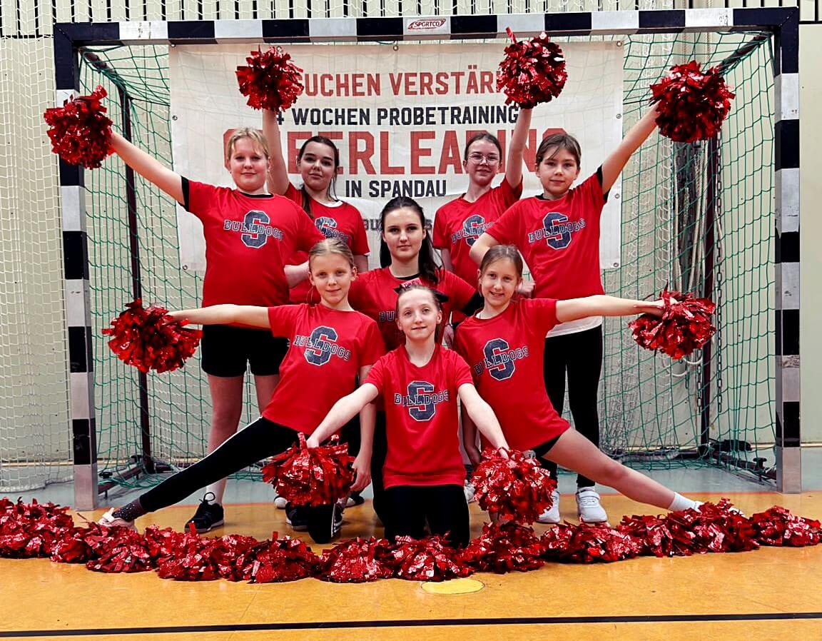 Für interessierte Jugendliche bitte vorher per Mail an cheer@spandau-bulldogs.de erkundigen, wo das Training beim ersten Probetrainingstag trainiert wird.