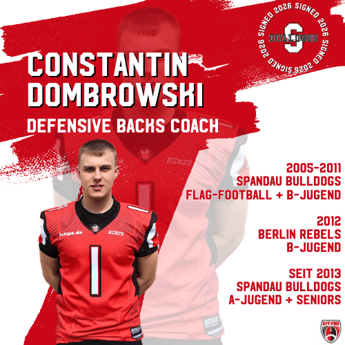 Constantin Dombrowski verstärkt unseren Staff im Bereich Defensive Backs. 🚨