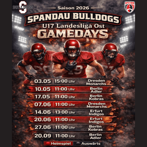 Besonderen Dank geht hier an die Geschäftsführer Dr. Jan und Diana Becker. Diana gehörte selbst einmal zu den legendären „Cheeky Welps“ der Spandau Bulldogs, die mehrfach den deutschen Meistertitel für den Verein gewannen.