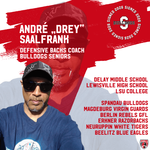 Wir freuen uns, André „Drey“ Saalfrank wieder bei den Bulldogs begrüßen zu dürfen – als neuen Defensive Backs Coach unseres Senior Teams.