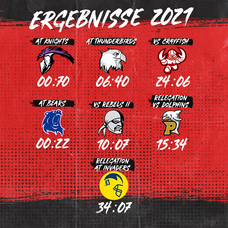 Kurz danach folgten bereits die nächsten beiden Spiele der Cottbusser. Erst schlugen sie die Bears mit einem knappen 13:18 und dann die Knights ebenfalls erstaunlich knapp mit nur 12:27. Während der knappe Sieg gegen die Knights wohl einem größeren Verletzungsaufkommen zuzuschreiben war, zeigte der enge Sieg gegen die Bears jedoch, dass mit den Bears 2021 zu rechnen war. Die Cottbusser waren nun mit vier Siegen in vier Spielen souverän auf Platz 1 der Liga. Spandau war zwar auch ungeschlagen, hatte aber gerade mal ein Spiel gespielt und die Bears noch vor sich.