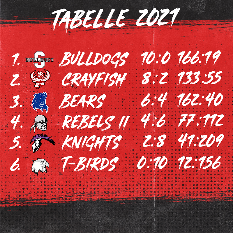 Mit dieser Einstellung ging es dann auch in das erste Spiel – man traf hier auf einen der vermeintlich (hoffentlich) leichteren Gegner, die Berlin Knights. Und tatsächlich konnten die Bulldogs das Spiel von Anfang an dominieren und mit einem Endstand von 70:00 das Zeichen setzen, dass die Offense souverän marschiert und punktet und die Defense konsequent keine Punkte zulässt. Der Liga durfte schon jetzt klar geworden sein, in welche Richtung es gehen sollte. ABER, zum Zeitpunkt des ersten Sieges der „Dawgs“ hatten die Crayfish bereits Ihre ersten zwei Siege eingefahren.