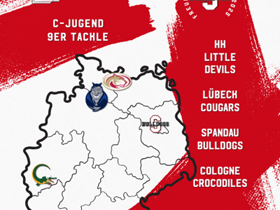 Unsere C-Jugend fährt demnächst nach Hamburg zu einem außerordentlichen Freundschafts-Turnier: 9er-Tackle und ein spannendes Teilnehmerfeld! Turnier-Teilnehmer: HH little Devils, Lübeck Cougars, Cologne... Read More