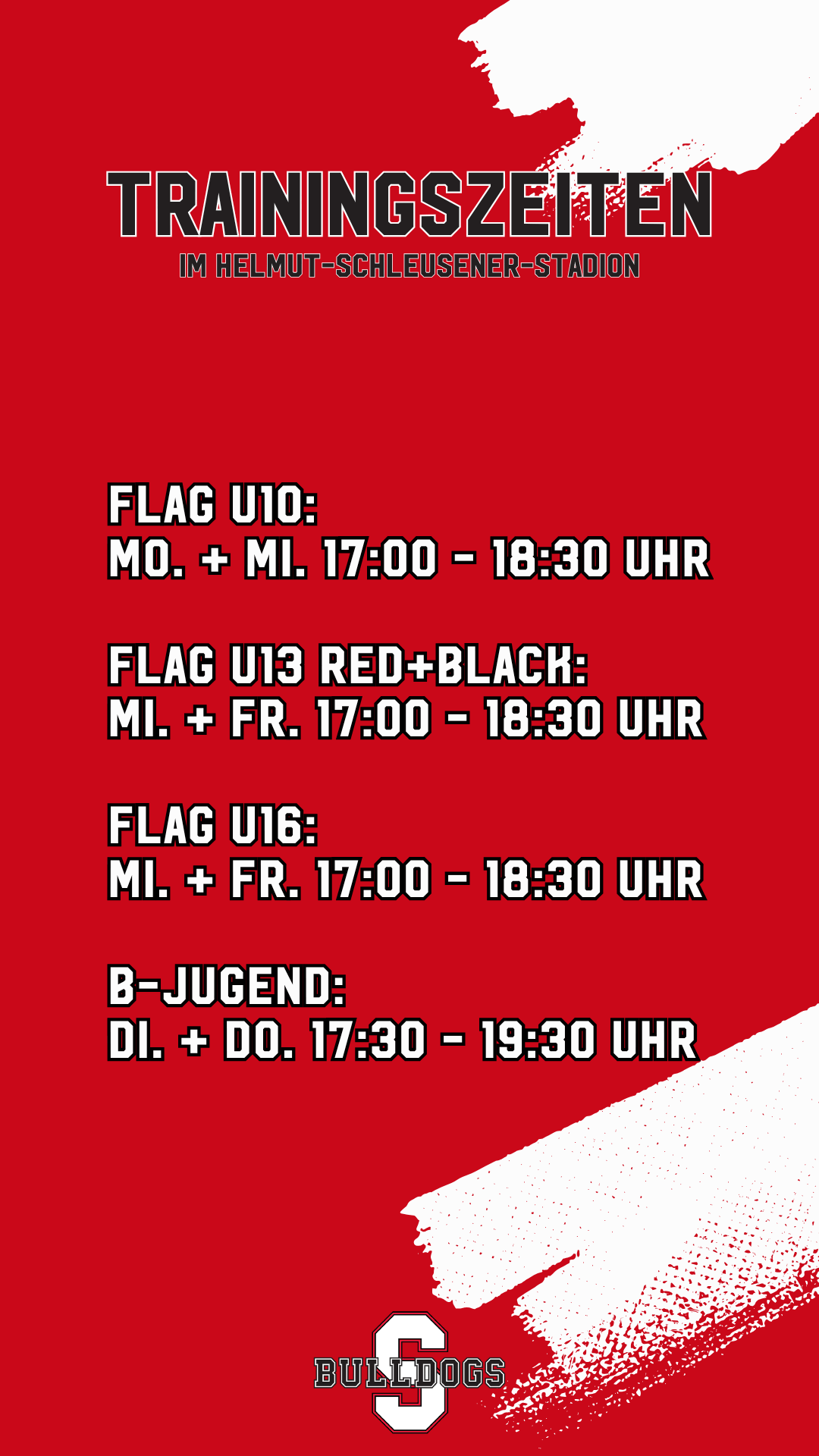 Hier eine Übersicht über die aktuellen Trainingszeiten der Teams
